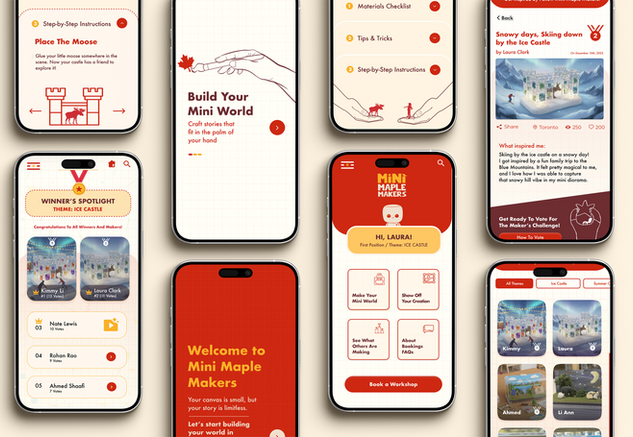 Mini Maple Makers is a UX research-driven workshop series developed in partnership with Little Canada. In this project, we explore how hands-on tangible creative experiences can be enhanced using digital media. Create and capture your tiny masterpiece with our app and watch us bring it to life with AI. Our research investigates how a hybrid (physical-digital) model can increase creative participation, strengthen user immersion, and encourage repeat visits by integrating workshop experiences with digital interaction within cultural attractions like Little Canada.